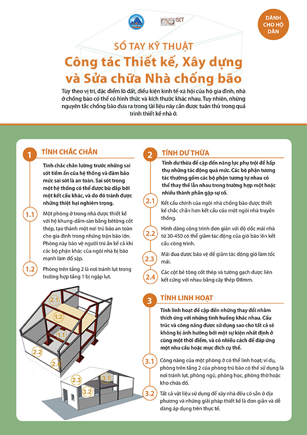 The technical handbook is part of the Undertaking Feasibility Study for Scaling Up the Model of Storm Resistant Housing for a Resilience Da Nang project, which is implemented in 26 months, from 07/2015 to 09/2017. The implementing agency is the Danang Department of Foreign Affairs (DoFA). The Institute for Social and Environmental Transition (ISET) acts as a consultancy and technical assistance unit in the implementation process. A series of handbook aims at different targeted group (including households, local builders, local officials), is created to guide the design and construction of typhoon-resilient housing to support the replication and scaling-up of the typhoon-resilient housing model.